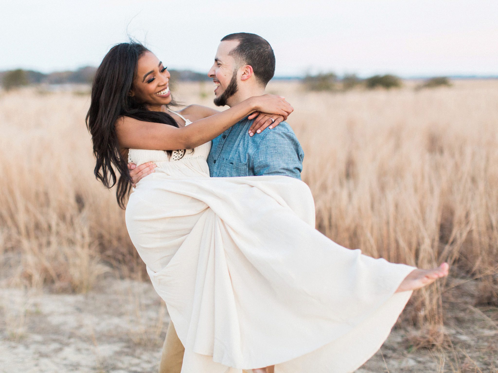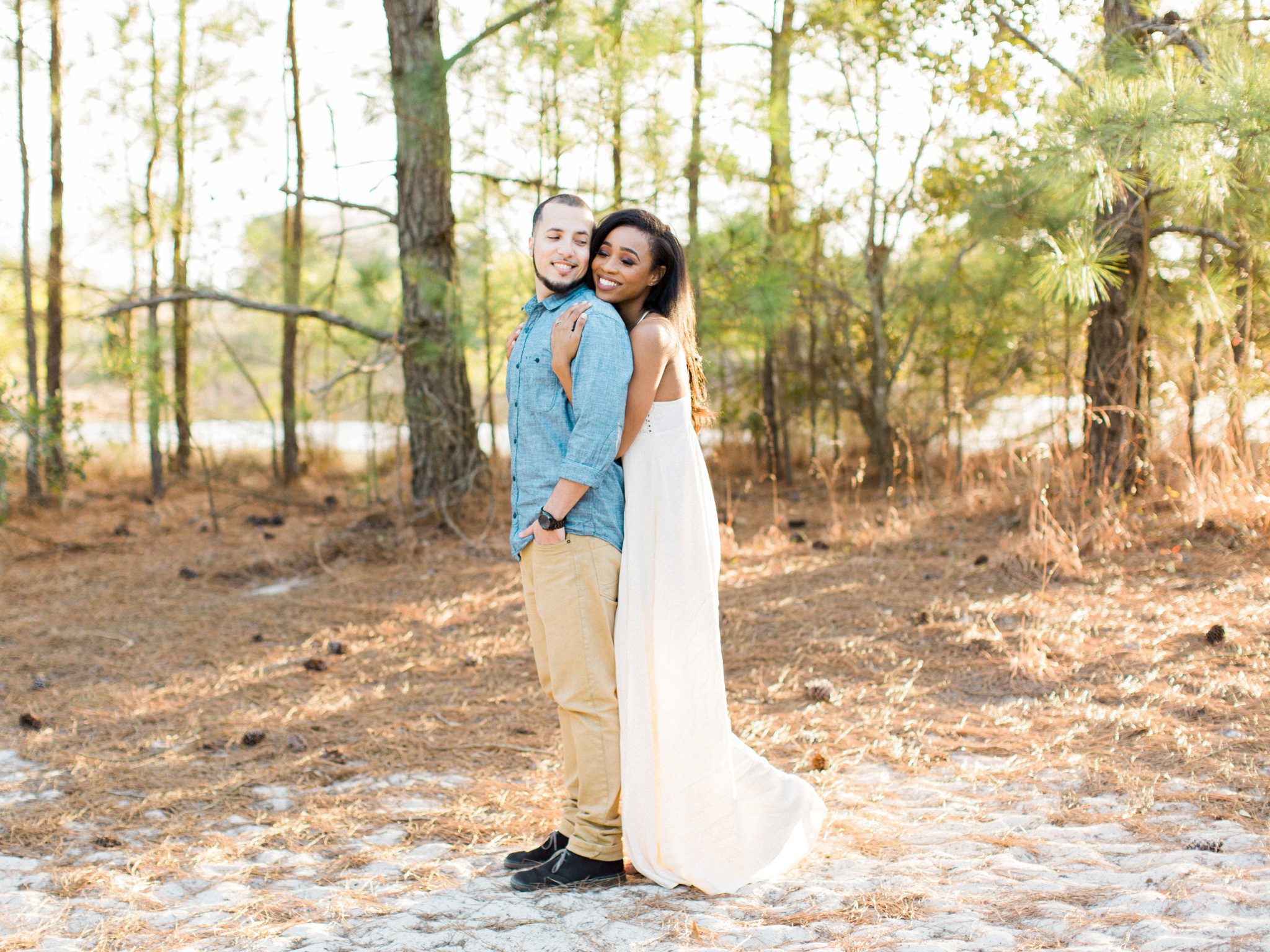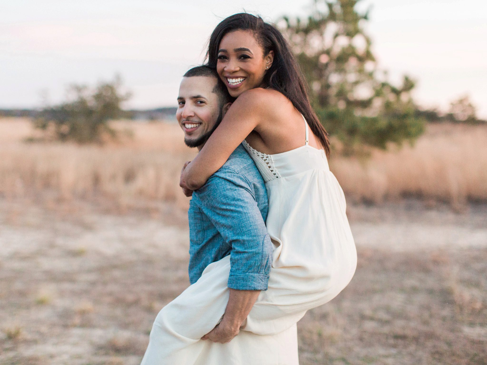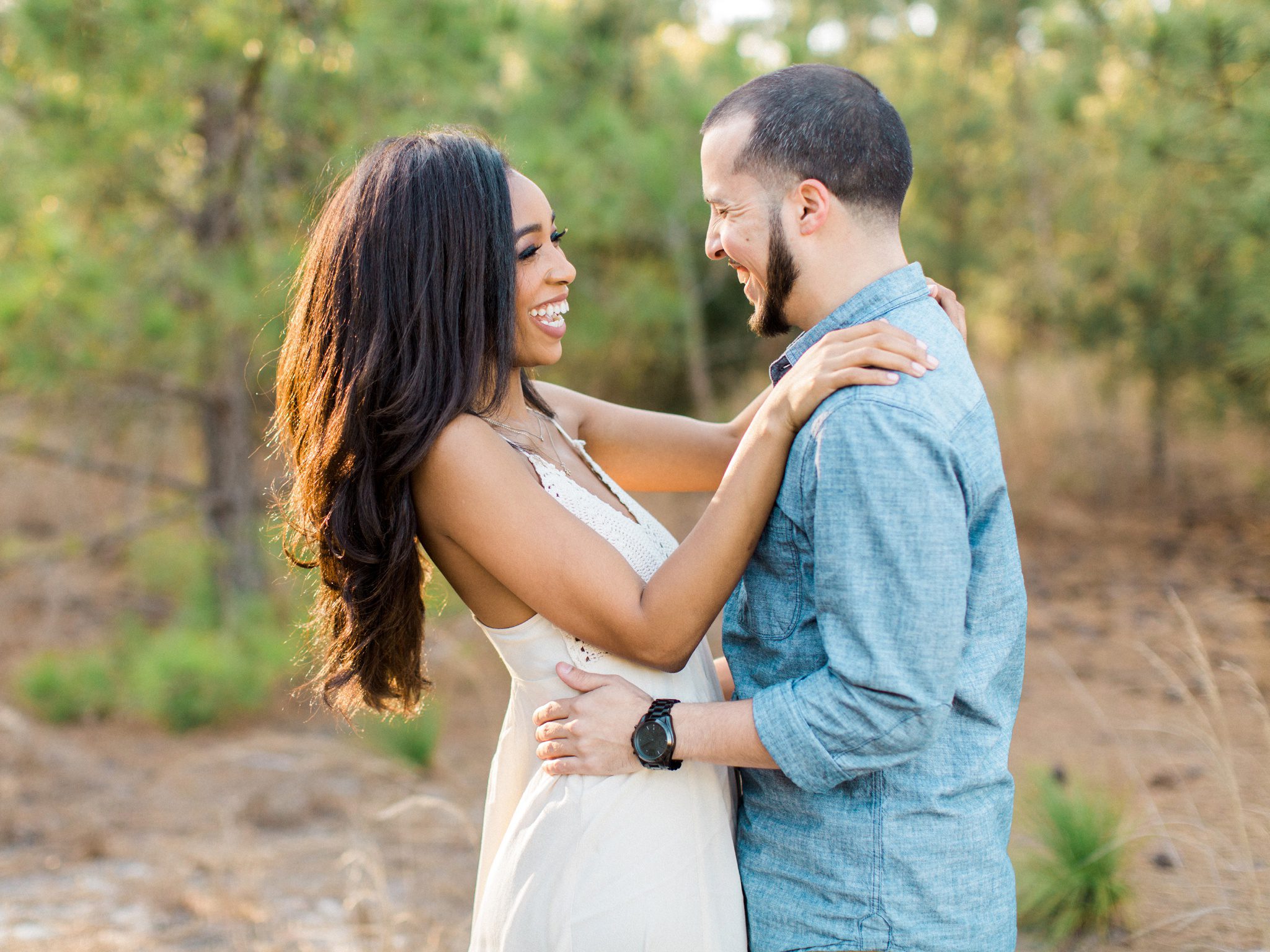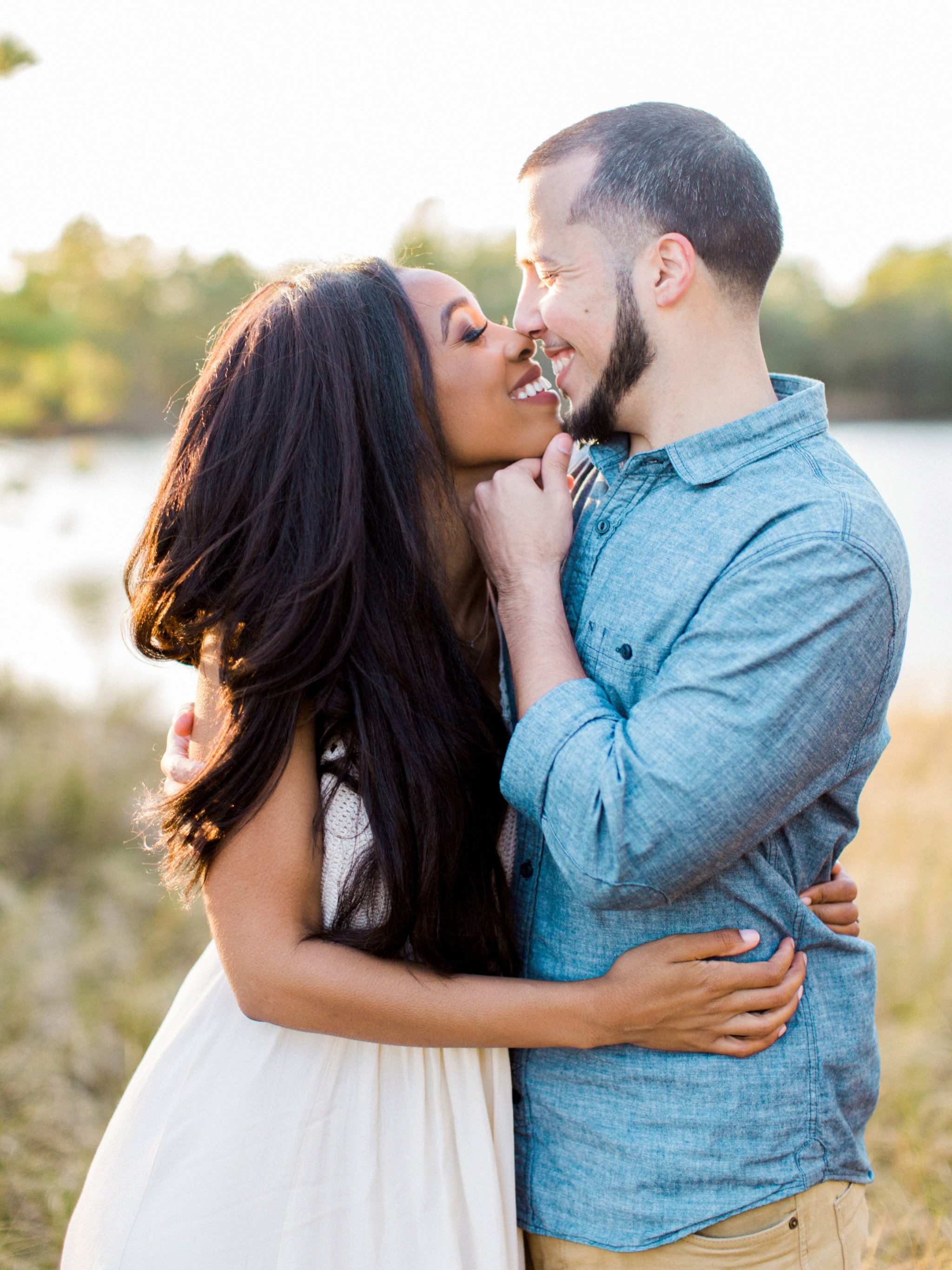 Tiffany and Allen are getting married this October at the Historic Post Office. Since their wedding will have a distinctive industrial-chic style, they knew they wanted their engagement session to be softer, outdoors, and in a very natural setting. They chose Pleasure House Point for their engagement shoot for its magical tall trees, long grasses, and soft, sandy stretches. They even brought along their puppy Charlie, who snuggled up with her pawrents in this fresh-air session punctuated with sweet salty kisses and lots of giggles.