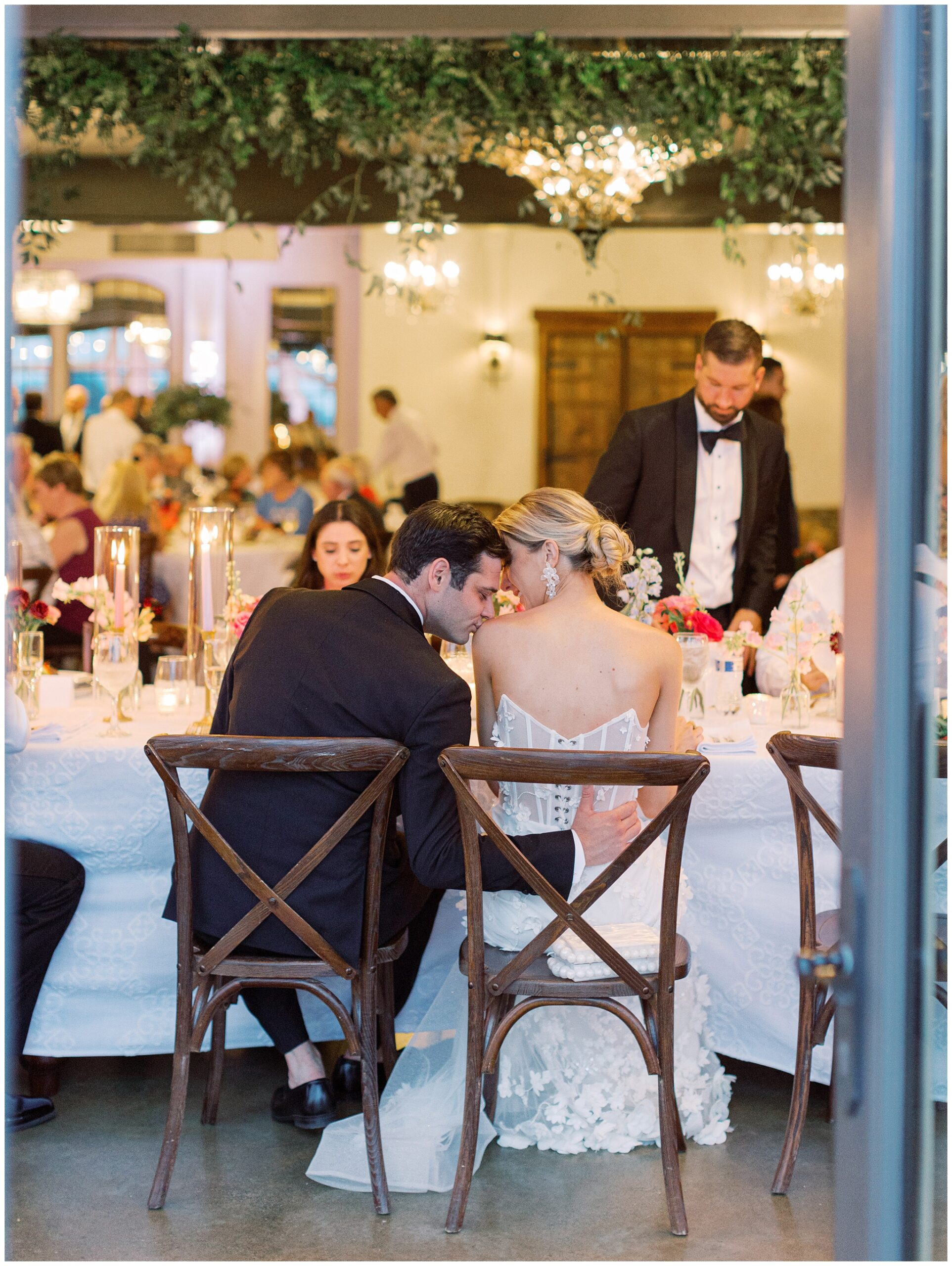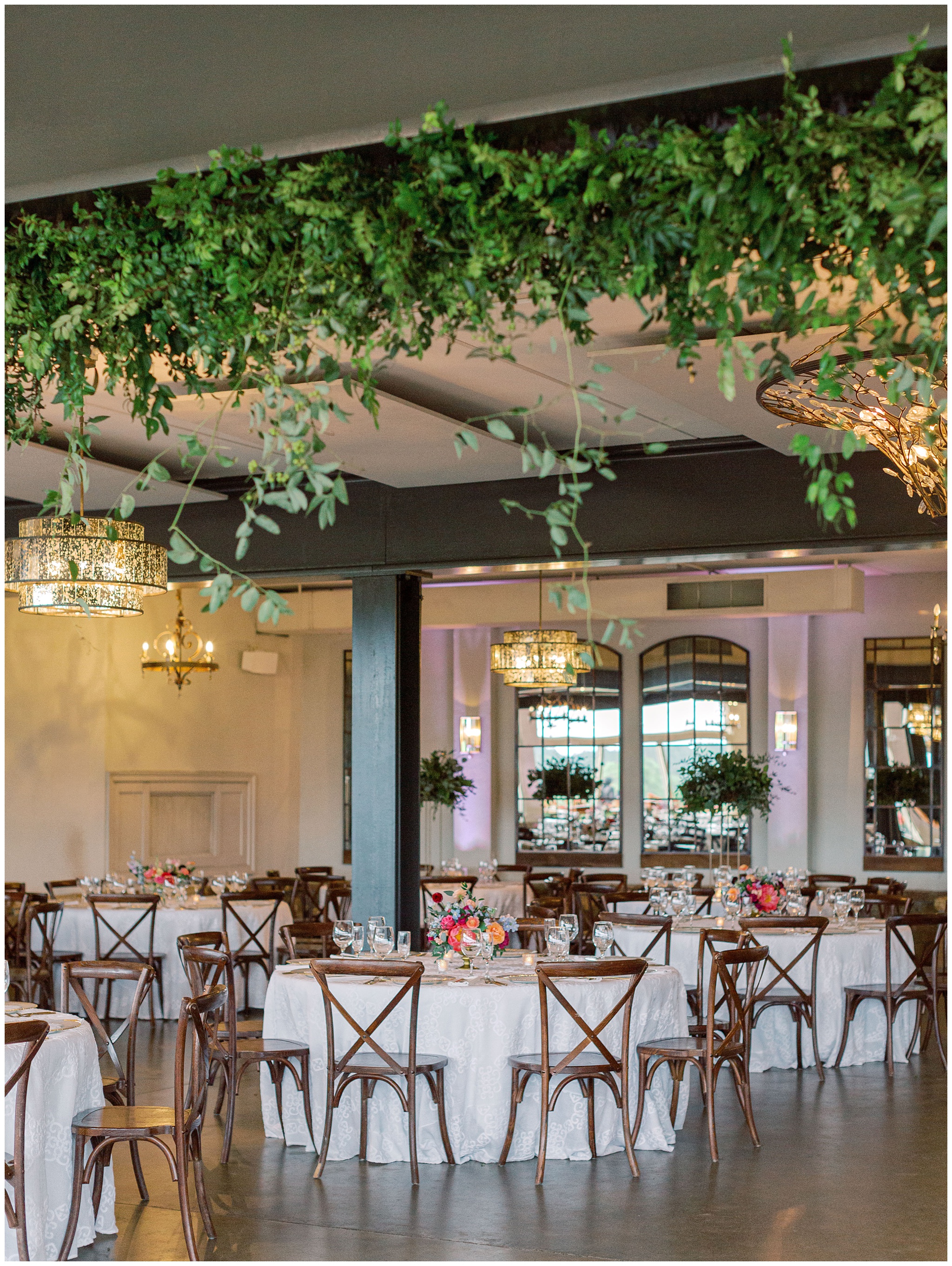 Allie’s show-stopping Monique Lhuillier gown perfectly reflected the day’s overarching design inspiration. With delicate cascading floral appliqué and a modern tulle bow that served as a fresh take on the traditional veil, Allie looked both fashion-forward and timeless.